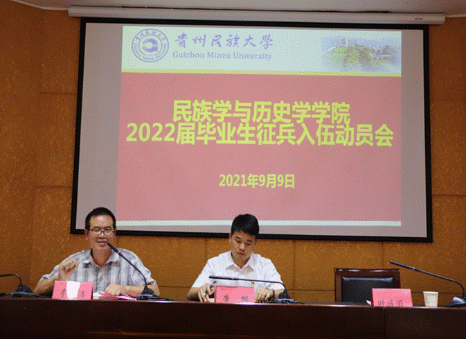 花溪校区行政楼第五会议室开展毕业生入伍动员宣讲会。参加本次会议的领导有院党委书记唐懈、院党委副书记李浩,2018级班主任张文艳、何慧琳及2018级全体本科生,本次会议由李浩副书记主持。
