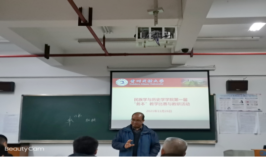 此次参赛教师及授课内容主要有:杨春艳《乡土历史文化调查》、胡文兰《田野调查基本概念》、夏远力《历史教学法》、崔璨《HIP-HOP文化的演变》、王朝阳《苗族文化介绍》、赵宁芳《认识马克思主义》、何慧琳《历史文化名城》、申雯清《民族学人类学经典导读》、高照晶《“赫尔之家”美国女性进步主义改革的缩影》、陈文元《中国民族史-土司制度》、史达宁《中国历史文选三》、贺源《人类学概论》、张岳嵩《中华民族共同体意识教育》。各位授课老师准备十分充分,课程内容丰富,通过PPT展示、板书搭配口头及肢体语言向台下师生生动地展示了授课内容承上启下、授课方式简单有效、授课节奏快慢有序、课堂互动生动有趣、课堂气氛积极活跃,使此次参与活动的师生受益良多。
