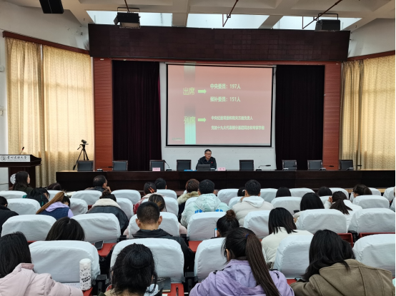 、文学院、体育与健康学院、音乐舞蹈学院等五个二级党委在花溪校区15号教学楼圆形会议室联合开展“深入学习贯彻党的十九届六中全会精神党员干部专题培训班”理论教学活动。马克思主义学院院长周俊教授应邀为五所学院全体党员干部授课,周俊教授作了题为“奋斗百年路 启航新征程——从数字中学习领会十九届六中全会精神”的专题宣讲。