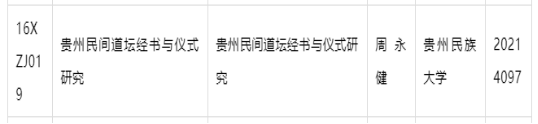 周永健教授的《贵州民间道坛经书与仪式研究》课题荣获国家社科优秀结项。2022年1月,国家社科优秀结项26项,是民历学院历史上第二项。第一项为李浩教授的《川盐古道与西南地区经济社会发展研究》,获得时间2020年3月,当年获国家社科优秀结项50项。