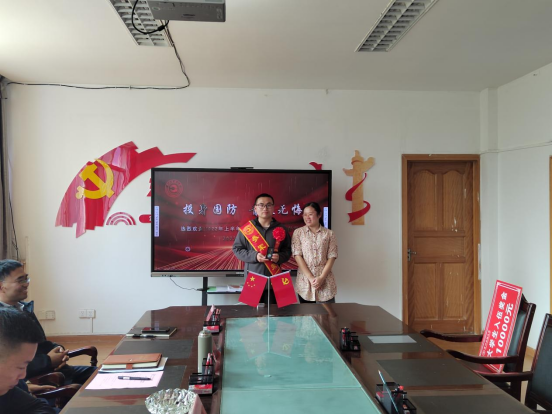 应征入伍的李帅同学基本情况。随后,党委书记唐懈和董强院长为李帅同学佩戴了大红花,并代表学校赠送了奖金。叶成勇、张文艳、卜妹红等老师也代表学院赠送了礼品。李帅同学在欢送仪式上表达了对学校培养的感激以及刻苦训练、为校争光的信心和决心。他表示,进入部队以后,一定不忘学校、老师的教诲,发扬民大人的精神,早日成为一名合格的军人!