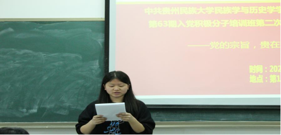 委员会第63期入党积极分子培训班第二次主题讨论会于花溪校区第15栋414教室开展。此次讨论围绕“党的宗旨,贵在于行”展开,由吴桐老师进行指导,王凤同志主持。
