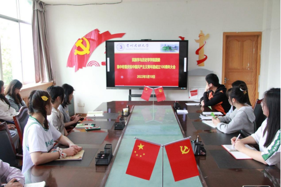 团委于行政楼403设立分会场,组织团员代表集中观看,其他团员自主观看的方式进行。团委副书记聂开吉、学生工作办公室副主任张文艳老师与团员代表共同观看本次庆祝大会。本次24名团员代表分别从2020级文化产业管理学1班团支部、2021级文物与博物馆学1班团支部进行推荐。