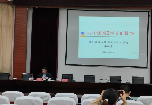 、马克思主义学院、社会学院、音乐舞蹈学院各支部党员于2022年5月26日晚上19:00在15栋教学楼圆形会议室开展2022年上半年党员培训班第四次党课学习。本次会议由马克思主义学院副院长李昭勇同志进行授课,授课内容为:两个国发2号文的比较。