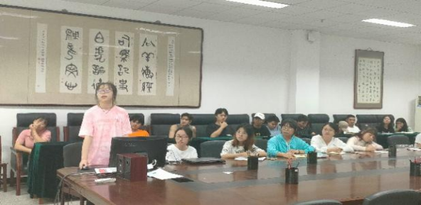 在汇报环节,全体学生分为六组,每组有针对性地阅读一篇专业论文,针对论文内容以及本组成员对论文的理解制作PPT,通过PPT进行汇报。徐香香、杨金会、孔珩珩、刘洋、王健芦、薛才源分别代表自己所在的小组进行了发言。