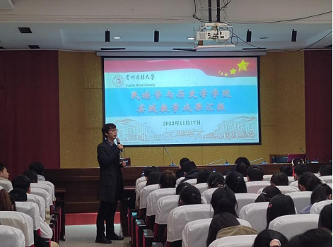 第一组,主讲人为王芙蓉同学,她们汇报的主题为“文化赋能,人才兴村、乡村振兴在路上——暑假“三下乡”安顺市幺铺镇社会实践活动汇报”。同学们深入乡村,为我们讲述了高素质人才对乡村振兴的重要性。