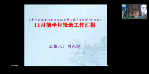 召开本月第二次三交史料汇编工作例会。叶成勇副院长、郭国庆副院长、周永健教授、袁本海、杨春艳、白林海、刘星、陈倩、杨成、孙洁、王朝阳、吴桐、王航等各位老师以及参与编纂工作的多位硕士研究生参加会议,会议以线上方式举行。