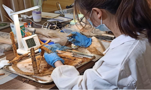 图四 工作人员修复铁器