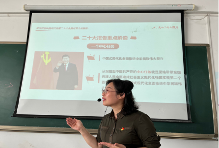 接着,陈倩同志解读了党的二十大报告,强调党的二十大是在全党全国各族人民迈上全面建设社会主义现代化国家新征程、向第二个百年奋斗目标进军的关键时刻召开的一次十分重要的大会。在政治上、理论上、实践上取得了一系列重大成果,是我们党团结带领人民全面建设社会主义现代化国家、全面推进中华民族伟大复兴的政治宣言和行动纲领。