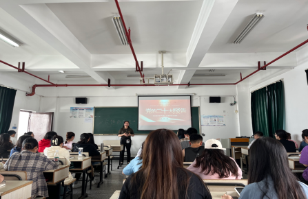 第65期入党积极分子培训第十三次授课在花溪校区15栋教学楼609教室举行。课堂围绕《深入学习贯彻党的二十大精神》专题展开,学院党委委员陈倩同志为全体学员授课,学院第65期共54位入党积极分子参与了此次培训。