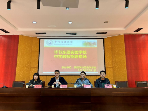 招聘会上,通过播放宣传片、PPT展示等方式让同学们了解到了毕节七星关区东辰实验学校的概况,招聘负责人吴伟、杨沁兰、张道峰三位老师针对同学们关心的薪资待遇、合同期限等相关问题进行了逐一解答。