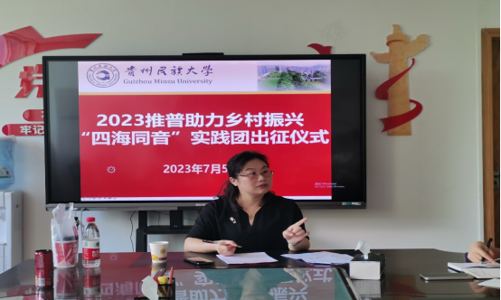 花溪校区行政楼403会议室举行出征仪式和初步部署工作,此次会议由带队老师陈倩教授主持,出席此次会议的有特邀专家刘苏荣教授以及“四海同音”实践团成员。