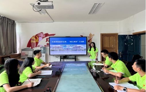 2023年7月24日下午14:00——15:40在行政楼403会议室展开。“两江两村”行动队成员王春敏对榕江县的历史沿革以及足球发展历程等进行逐一分享,“两江两村”行动队全体成员参与本次活动。