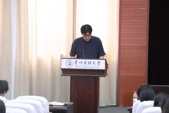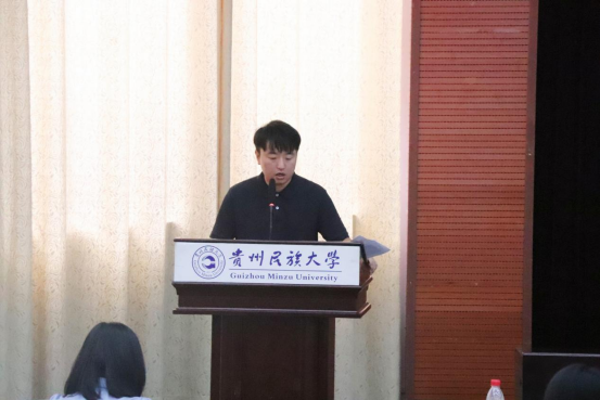 学生发言结束后,由吴桐老师作为学院教师代表发言。他通过分享自己的经验对新生提出两点建议:一是培养自己的兴趣。兴趣是最好的老师。要培养对一件事情的兴趣,首先必须去尝试,只有尝试过以后才谈得上是否感兴趣。他希望大家能够对自己的专业带着浓厚的兴趣去学习,收获知识。二是定好自己的目标。只有明确自己人生的方向,我们才能准备好出发的行囊,才能在一次次山重水复时不迷失自己心中的方向。