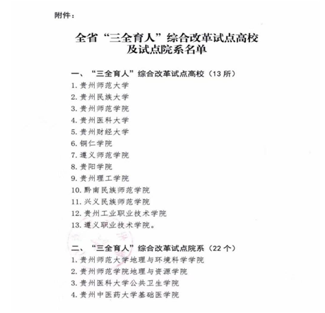 2021年2月3日,贵州省教育厅关于建设全省“三全育人”综合改革试点高校及试点院系名单进行公示,麻豆做爱