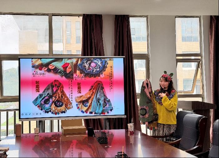 除服装创作外,张书林老师还展示了老绣在配饰、靴子、包袋、座椅、家居用品等领域的创新应用。她以特色老绣片为核心,设计了成套座椅,将民族刺绣元素融入现代家居空间,以系列化、整体化的思路推动非遗技艺真正走入日常生活,为老绣文创的拓展提供了新路径。