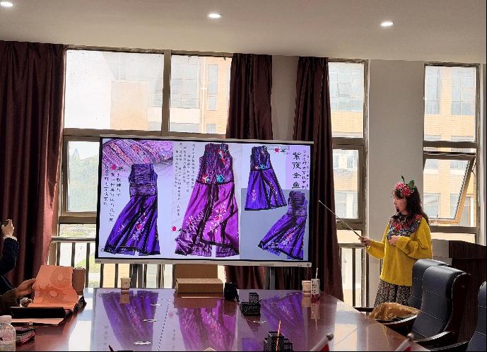 图2 张书林老师讲解刺绣服饰设计作品