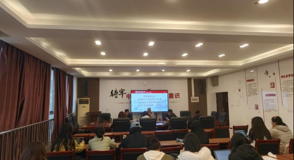 马克思主义民族理论研究生2026年春季学期第二次周会在民族学与历史学院D412会议室召开,本次周会主题为“学习《中华人民共和国民族团结进步促进法》,感悟民族理论向法律意志的高度升华”。