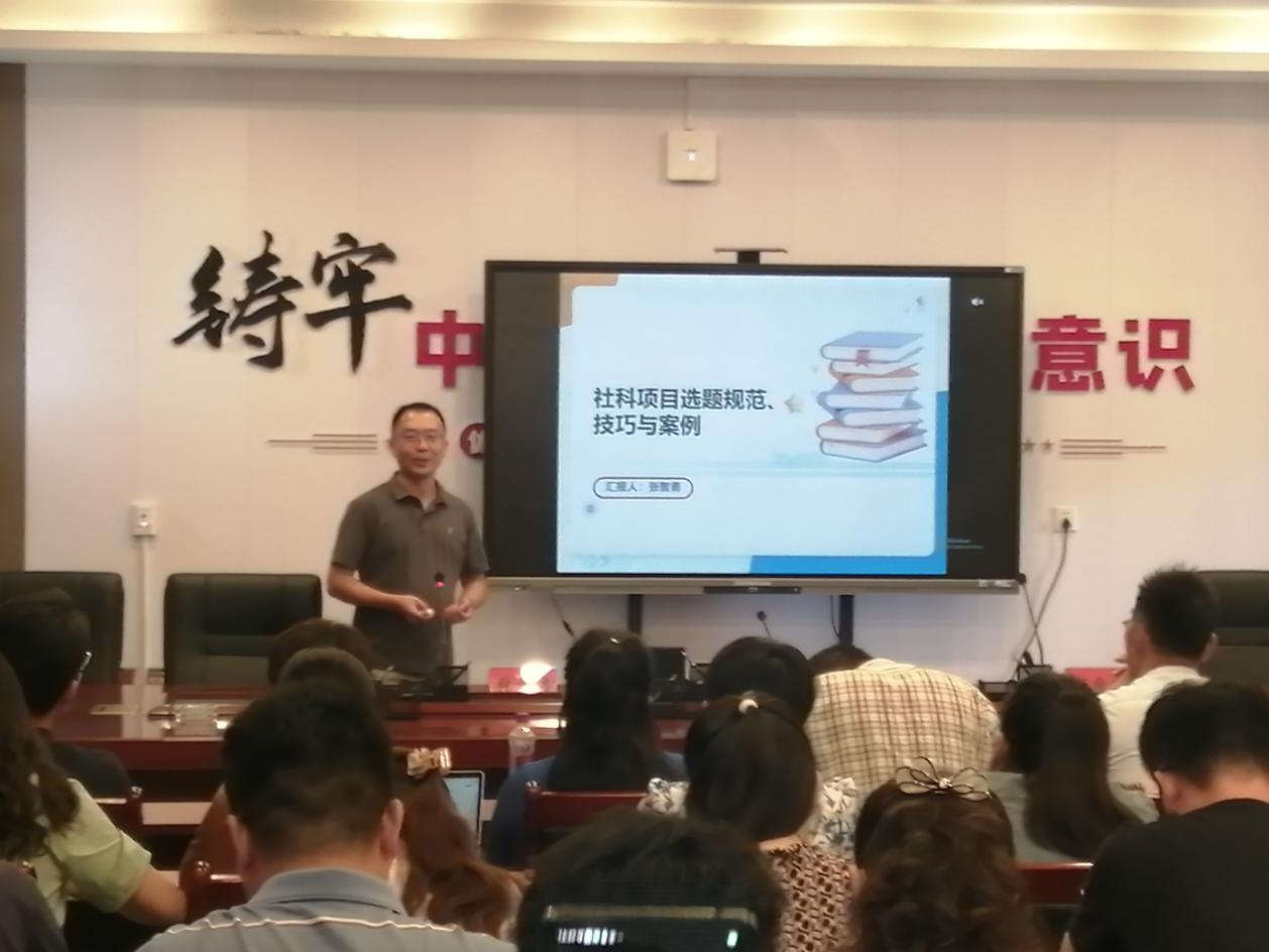 张智勇老师着重讲了社科项目选题的重要性,认为在项目的选题上要坚持问题导向、坚持理论创新,在这个过程中各位老师应当增强问题意识,选题是来源生活并高于生活的。同时,张老师讲到选题切忌盲目跟风,要与实际相贴切,选题应当在国家需求以及自身优势这两者中寻求共性点;随后对选题误区、原则、技巧、注意事项等方面做了解读。最后,张老师做出进行了小结,提出选题应当以小见大,要有“小切口,大战略”的视野,讲求“守正用奇,大道至简”等原则,并就相关案例进行详细说明。