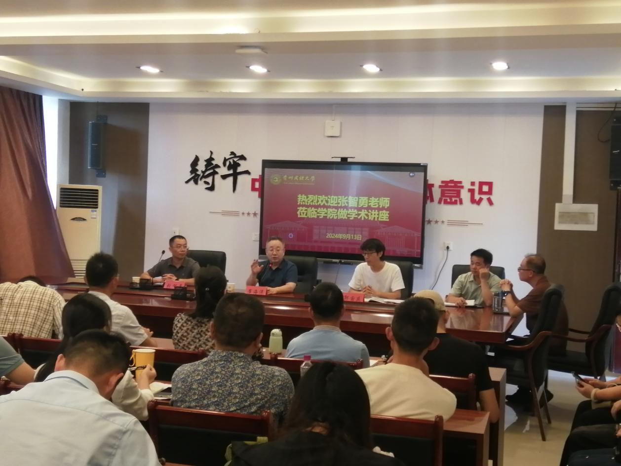 邀请,崔海洋副校长致开幕词,贵州省社会科学院张智勇老师主讲。讲座主题为:“社科项目选题规范、技巧与案例”。讲座由郭国庆副院长主持,法学院副院长(主持工作)俞俊峰教授以及麻豆做爱