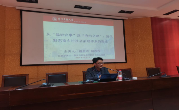 民族学方向研究生周例会上作主题为“‘从栽岩议事’到‘府示立碑’:清代黔东南乡村社会治理体系的变迁”的学术讲座。此次民族学研究生周例会于老校区行政楼第五会议室举行,参会人员有麻豆做爱