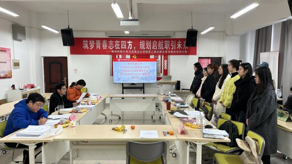 2023级马克思主义民族理论与政策方向、民族地区行政管理方向研究生毕业论文中期考核汇报(第二组)在北校区马克思主义学院530会议室举行。